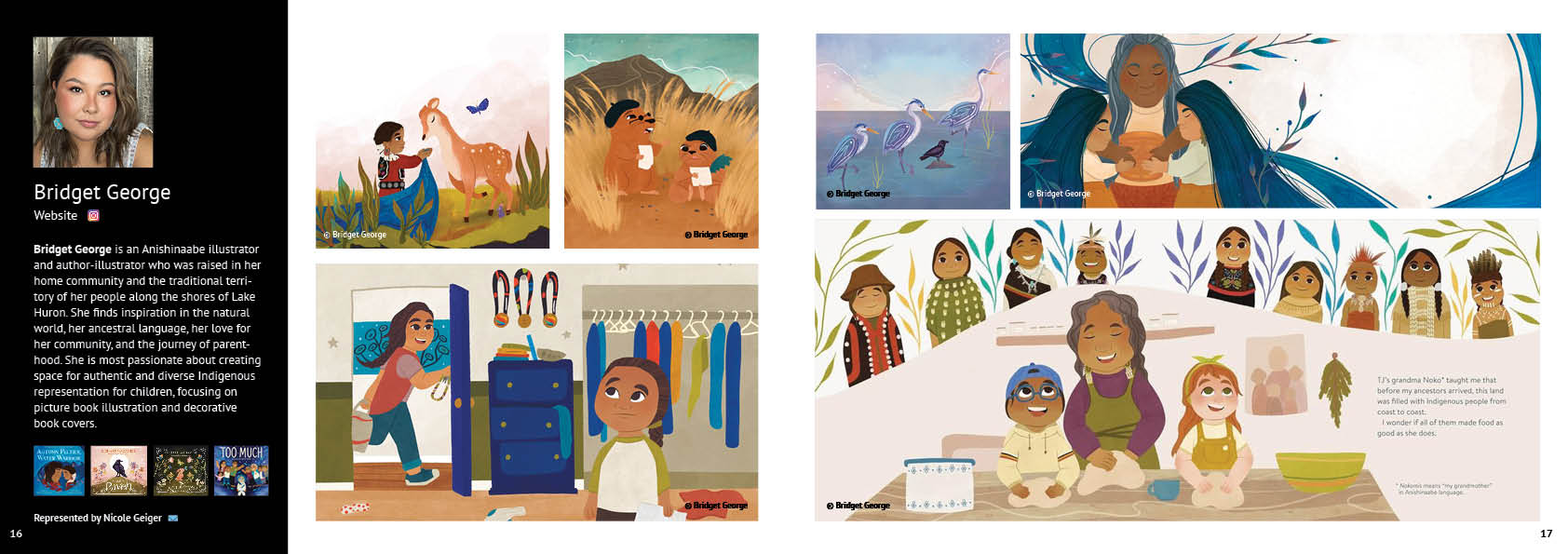 Bridget is an Anishinaabe illustrator as well as author/illustrator who sits with the Bear Clan. She was raised on the shore of Lake Huron in the beautiful First Nations community of Kettle and Stony Point. She is passionate about creating space for authentic and diverse Indigenous representation, especially for children, and enjoys working on illustration projects built on a foundation of love and meaningful connection.