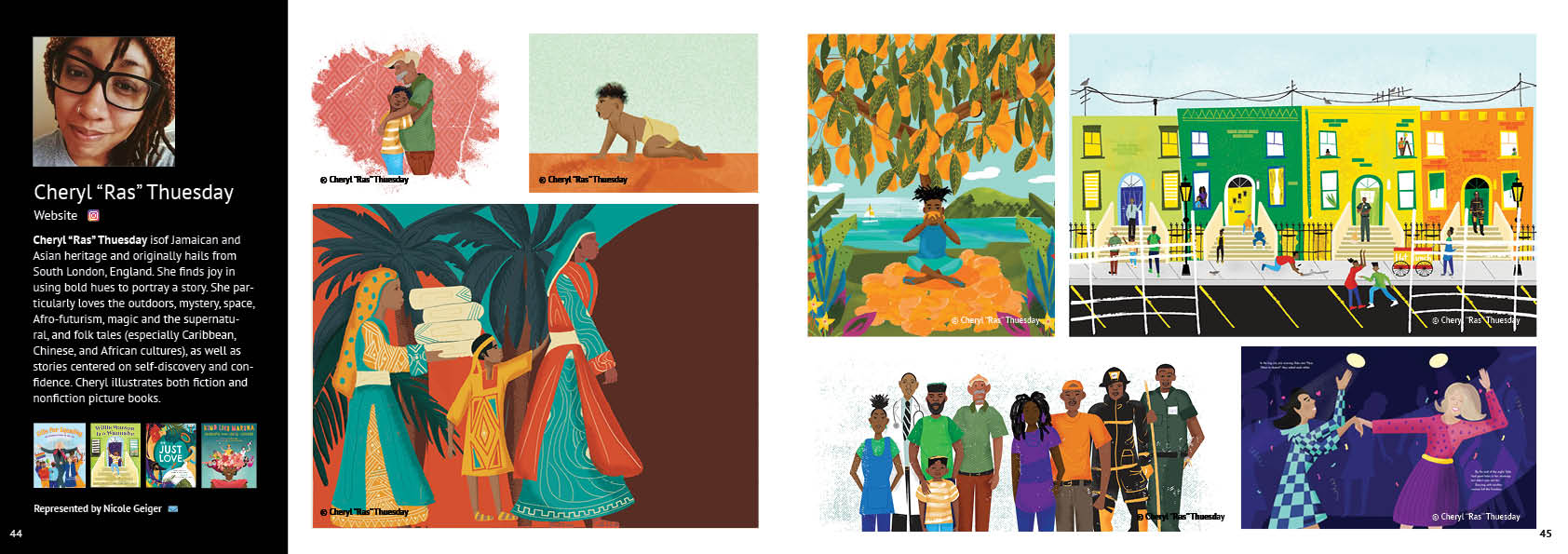 Cheryl “Ras” Thuesday is a Chinese-Jamaican, New Jersey-based illustrator originally from South London, England. Her abundant use of vibrant color is on display throughout her artwork, which is heavily influenced by her Jamaican and Asian heritage. She finds joy in using bold hues to portray a story and believes color can communicate emotion. What identifies a Cheryl Thuesday piece is vibrant color and experimentation. She finds joy in using bold hues to portray a story and communicate emotion.