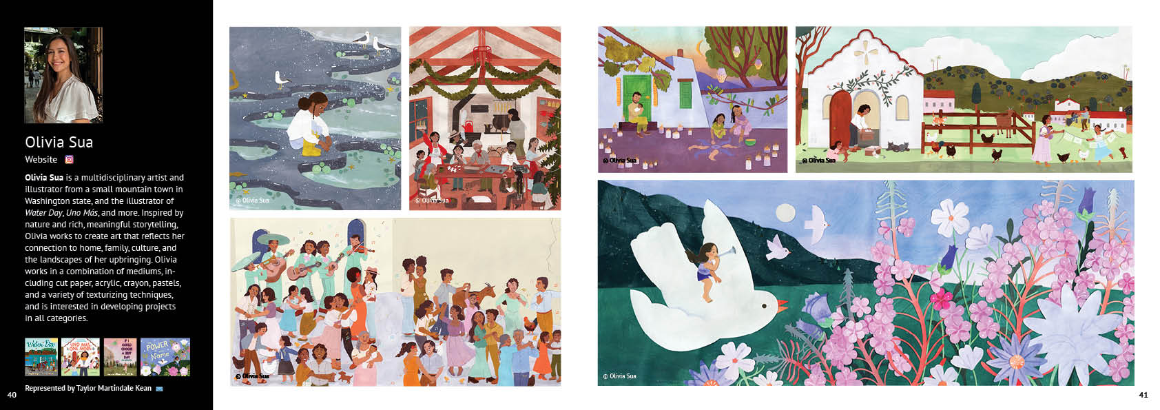 Olivia Sua is a multidisciplinary artist and illustrator living in Portland, Oregon. Born and raised in a small mountain town called North Bend (WA), she is inspired by the seasons, nature, and rich, meaningful storytelling. With her artwork, she creates a mythology that reflects her connection to home, the landscapes of her upbringing, and her family. Her picture books include Water Day written by Margarita Engle (Atheneum/S&S) in both English and Spanish, and If I Could Choose a Best Day: Poems of Possibility, by Charles Waters and Irene Latham (Candlewick), and Uno Más, One More: A Latino Retelling of an Old Scottish Ballad by Silvia López (Christy Ottaviano Books), which received a starred review from School Library Journal and was selected for the Society of Illustrators Original Art Show!